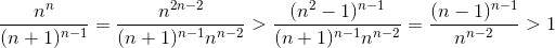 n – натуральное число. Докажите, что nn > (n + 1)n–1.