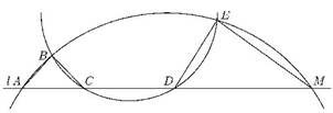 Соединим точки B и E (см. рис.). Четырёхугольники ABEM и BEDC являются вписанными, поэтому