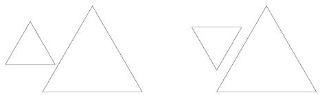 Поскольку каждый треугольник может иметь общий участок стороны только с параллельным ему треугольником, то раскраску можно производить для каждого "класса параллельности" независимо. Покажем, как покрасить в два цвета, удовлетворяя условиям задачи, треугольники одного "класса параллельности". Введём для этого на "классе параллельности" понятие ориентации: два треугольника на рис. слева одинаково ориентированны, а два треугольника на рис. справа – противоположно ориентированны.