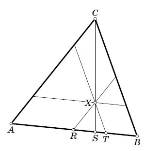 Решение 2: Рассмотрим данный треугольник ABC и узлы X и Z внутри него. Через X проведём три прямые, параллельные сторонам треугольника. Таким образом, треугольник ABC разбивается на три треугольника и три параллелограмма (см. рис.).