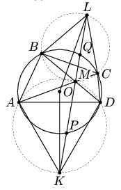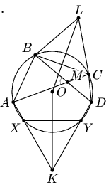 |AD|·|XY| = |AD|·|BC|. Рассуждая аналогичным образом, получим, что степень точки L относительно этой же