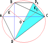 Проведём диаметр DD1. Пусть K и K1 — проекции точки O на хорды AB и CD1 соответственно. Поскольку BD1 и AC перпендикулярны DB, то BD1 параллельно AC. Поэтому D1C = AB и OK1 = OK.