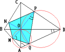 $\displaystyle \angle$QMO + $\displaystyle \angle$QPO = $\displaystyle \angle$QAO + $\displaystyle \angle$QDO = 90o