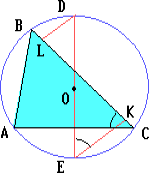 LK = DE sin$\displaystyle \angle$DEK = 2R sin$\displaystyle \angle$DEK = 2R sin$\displaystyle \angle$BCA = AB.
