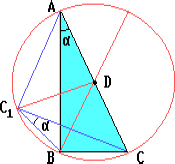Точка D – центр описанной окружности треугольника ABC. Поскольку C1D = DC, то точка C1 принадлежит этой окружности. Поэтому