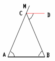 Пусть CD – биссектриса угла BCM, смежного с углом при вершине C равнобедренного треугольника ABC (см. рис.). Тогда ∠BCM = ∠A + ∠B = 2∠B, а ∠BCD = ½ ∠BCM = ∠B.