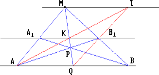 Действительно, треугольник KTB1 подобен треугольнику ATQ, а треугольник A1MK – треугольнику AMQ, причём коэффициент подобия один и тот же, так как A1K = KB1. Следовательно,