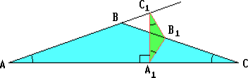 Второе решение не удовлетворяет условию: точка C1 лежит на продолжении отрезка AB за точку B, поэтому AB sin γ < A1C1, то есть