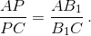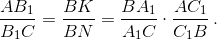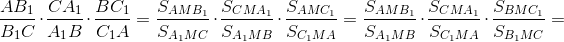 С другой стороны, точка M лежит на отрезке, соединяющем точку B с центром масс точек A и C, то есть с точкой, лежащей на стороне AC и делящей её в отношении CB1 : B1A = 1 : pq.