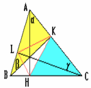 BH = AB |cos β|, CK = BC |cos γ|. Кроме того, из подобия треугольников CKH и CBA следует, что HK = AB |cos γ|. Аналогично KL = BC |cos α|, LH = AC |cos β|. Следовательно, каждое из рассматриваемых произведений равно AB·BC·AC |cos α cos β cos γ|.