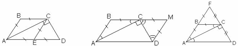 Пусть E – середина большего основания AD трапеции ABCD, в которой AB = BC = ½ AD. Первый способ. ABCE – ромб, поэтому AC ⊥ BE || CD. Второй способ. ABCE – параллелограмм, поэтому CE = AE = ED. Значит, медиана CE треугольника ACD равна половине стороны AD. Следовательно, ∠ACD = 90°.