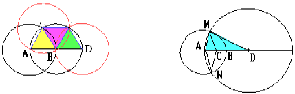 Затем построим окружность с центром D и радиусом DA. Пусть M и N – точки её пересечения с уже построенной окружностью с центром A радиуса AB. С центрами в точках M и N построим окружности радиуса MA = NA. Их точка пересечения, отличная от A, есть искомая середина отрезка AB.