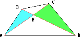 Сложив эти неравенства, получим AB + CD < AM + BM + CM + DM = (AM + CM) + (BM + DM) = AC + BD.
