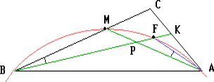 с биссектрисой BK. Отрезок MF виден из точек B и A под одним и