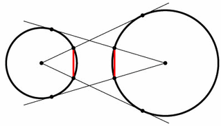 Из центра каждой из двух данных окружностей проведены касательные к другой окружности.