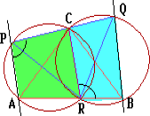 Отрезок CR виден из точек B и Q под углом 60o, поэтому точки C, Q, B, R лежат на одной окружности. Аналогично точки C, P, A, R также лежат на одной окружности. Поэтому