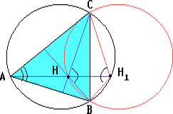 Решение 1:Пусть H1 – точка, симметричная точке H относительно прямой BC. Тогда ∠BH1C = ∠BHC = 180° – ∠A. Поэтому точка H1 лежит на описанной окружности треугольника ABC. Следовательно, описанная окружность треугольника BHC симметрична описанной окружности треугольника ABC относительно прямой BC. Остальное аналогично.