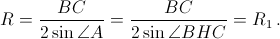 Решение 2:Пусть R и R1 – радиусы описанных окружностей треугольников ABC и BHC соответственно. Тогда