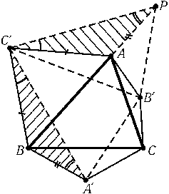 На сторонах произвольного треугольника ABC внешним образом построены равнобедренные треугольники с углами 2α, 2β и 2γ при вершинах A', B' и C', причём α + β + γ = 180°. Докажите, что углы треугольника A'B'C' равны α, β и γ.
