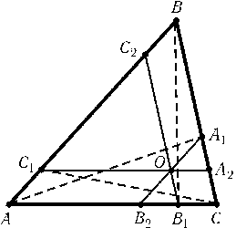 Через точку O, лежащую внутри треугольника ABC, проведены отрезки, параллельные сторонам. Отрезки AA1,BB1и CC1разбивают треугольник ABCна четыре треугольника и три четырехугольника (рис.). Докажите, что сумма площадей треугольников, прилегающих к вершинам A,Bи C, равна площади четвертого треугольника.