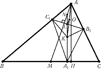 Пусть K — точка Лемуана треугольника ABC; A1,B1и C1 — проекции точки Kна стороны треугольника ABC; L — середина отрезка B1C1; N — точка пересечения прямой KLи медианы AM; O — середина отрезка AK(рис.). Точки B1и C1лежат на окружности с диаметром AK, поэтому согласно задаче 5.132 OL$\perp$B1C1. Кроме того, AN$\perp$B1C1(задача 5.133) и O -- середина отрезка AK, а значит, OL — средняя линия треугольника AKNи KL=LN. Следовательно, K — середина отрезка A1N. Остается заметить, что при гомотетии с центром M, переводящей Nв A, отрезок NA1переходит в высоту AH.