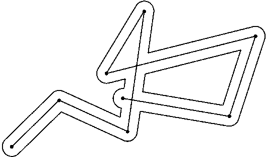Пусть деревья высотой a1 > a2 > ... > an растут в точках A1, ..., An. Тогда по условию A1A2 ≤ a1 – a2, ..., An–1An ≤ an–1 – an. Следовательно, длина ломаной A1A2...An не превосходит (a1 – a2) + (a2 – a3) + ... + (an–1 – an) = a1 – an < 100 м. Эту ломаную можно огородить забором, длина которого не превосходит 200 м (см. рис.).