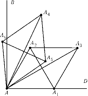 а) Фигуру, лежащую внутри квадратаABCDсо стороной 1, обозначим через F, а ее площадь — через S. Рассмотрим два вектора$\overrightarrow{AA_1}$и $\overrightarrow{AA_2}$, где точка A1лежит на сторонеADи AA1= 0, 001, а точка A2лежит внутри углаBAD,$\angle$A2AA1= 60oи AA2= 0, 001 (рис.). Пусть F1и F2 — образы Fпри параллельных переносах на векторы$\overrightarrow{AA_1}$и $\overrightarrow{AA_2}$. Фигуры F,F1и F2не имеют общих точек и лежат внутри квадрата со стороной 1, 001. Поэтому3S< 1, 0012, т. е.S< 0, 335 < 0, 34. б) Рассмотрим вектор$\overrightarrow{AA_3}$=$\overrightarrow{AA_1}$+$\overrightarrow{AA_2}$. Повернем вектор$\overrightarrow{AA_3}$вокруг точки A(против часовой стрелки на острый угол) так, чтобы точка A3перешла в точку A4, для которойA3A4= 0, 001. Рассмотрим также векторы$\overrightarrow{AA_5}$и $\overrightarrow{AA_6}$длиной 0, 001, образующие с вектором$\overrightarrow{AA_4}$углы 30oи лежащие по разные стороны от него (рис.). Обозначим образ фигуры Fпри параллельном переносе на вектор$\overrightarrow{AA_i}$через Fi. Для определенности будем считать, чтоS(F4$\cap$F)$\le$S(F3$\cap$F). ТогдаS(F4$\cap$F)$\le$S/2, поэтомуS(F4$\cup$F)$\ge$3S/2. Фигуры F5и F6не пересекаются ни друг с другом, ни с фигурами Fи F4, поэтомуS(F$\cup$F4$\cup$F5$\cup$F6)$\ge$7S/2. (Если бы оказалось, чтоS(F3$\cap$F)$\le$S(F4$\cap$F), то вместо фигур F5и F6нужно было бы взять F1и F2.) Так как длины векторов$\overrightarrow{AA_i}$не превосходят 0, 001$\sqrt{3}$, все рассматриваемые фигуры лежат внутри квадрата со стороной 1 + 0, 002$\sqrt{3}$. Поэтому7S/2$\le$(1 + 0, 002$\sqrt{3}$)2и S< 0, 287. римечаниеS(A$\cup$B) — площадь объединения фигур Aи B,S(A$\cap$B) — площадь их пересечения.