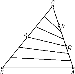 Возьмем на сторонеBCтреугольникаABCточкуP, а на сторонеAC — точкиQиR. к Вырожденный четырехугольниккQRCPи четырехугольникAQPBможно разбить на отрезки, как это делалось в предыдущей задаче (рис.).