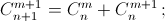 – количество путей, ведущих из вершины треугольника Паскаля к числу, стоящему на (m+1)-м месте в (n+1)-й строке. Каждый такой путь проходит либо через m-е, либо через (m+1)-е число m-й строки и в далее за один "ход" попадает в нужное место. Путей второго типа –