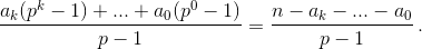 αp = (akpk–1 + ... + a1) + (akpk–2 + ... + a2) + ... + ak = ak(pk–1 + ... + p + 1) + ... + a1 =