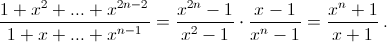 При каких n многочлен 1 + x² + x4 + ... + x2n–2 делится на 1 + x + x2 + ... + xn–1?