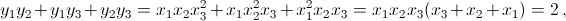 y1 + y2 + y3 = x2x3 + x1x3 + x1x2 = 1,