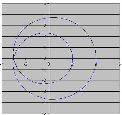 Движется а) по окружности радиуса 2 против часовой стрелки. б) по эпициклоиде (рис. слева) против часовой стрелки.