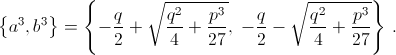 a³ + b³ = – q, a³b³ = (ab)3 = (– p/3)³. Следовательно, a³ + b³ – корни квадратного уравнения t² + qx – p³/27 = 0, то есть