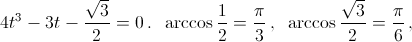 По методу Виета (см. задачу 161275), сделав замену x = 2t, получим уравнения 4t³ – 3x – ½ = 0 и