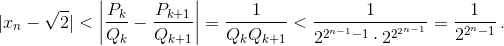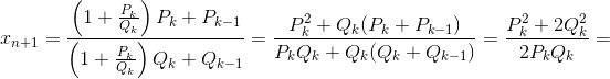 Пусть xn = Pk/Qk, где k = 2n–1 – 1. Дробь xn+1 получается из дроби