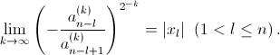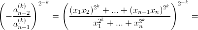 На основе этого рассуждения Лобачевский придумал метод для приближенного поиска корней многочлена P(x). Он заключается в следующем. Строится такая последовательность многочленов P0(x), P1(x), P2(x), ..., что P0(x) = P(x) и многочлен Pk(x) имеет корни