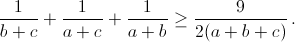 После замены x = b + c, y = a + c, z = a + b неравенство превращается в неравенство между средним арифметическим и средним гармоническим