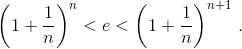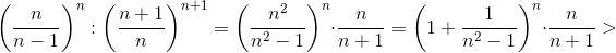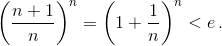 Правое неравенство доказывается аналогично с использованием очевидного неравенства (1 + 1/n)n > 2 при n > 1. в) Заметим, что последовательность (1 + 1/n)n возрастает. Действительно,