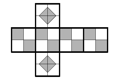 Дан куб с ребром 2. Покажите, как наклеить на него без наложений 10 квадратов со стороной 1 так, чтобы никакие квадраты не граничили по отрезку (по стороне или её части). Перегибать квадраты нельзя.