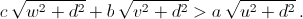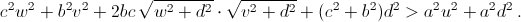 Пусть D' – проекция точки D на плоскость ABC. Обозначим a = BC, b = AC, c = AB, d = DD', u = AD', v = BD', w = CD'. Надо доказать неравенство