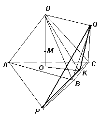 . DKO – угол между гранями правильного тетраэдра, поэтому cos∠DKQ = OK/DK = 1/3. Тогда.