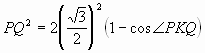 cos∠PKQ = cos(3∠DKQ) = 4·1/27 – 3·1/3 = – 27/3. Из треугольника PKQ