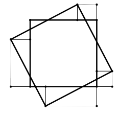2) Совместимость этих кусков поворотом скатерти на 90° вокруг её центра.