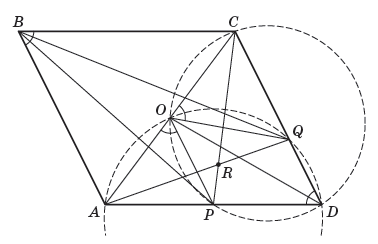 На сторонах AD и CD параллелограмма ABCD с центром O отмечены такие точки P и Q соответственно, что ∠AOP = ∠COQ = ∠ABC.