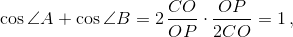 Докажите, что cos∠A + cos∠B = 1.