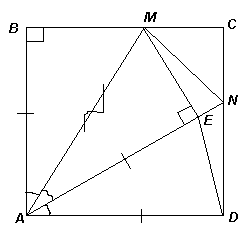 На сторонах BC и CD квадрата ABCD отмечены точки M и N соответственно так, что лучи AM и AN делят угол BAD на три равные части. ME – высота треугольника MAN. Найдите угол EDN.