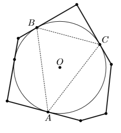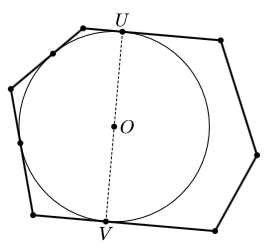 Пусть окружность Ω с центром O – наибольшая из окружностей, лежащих внутри P, A1, A2, ..., Ak – точки касания Ω со сторонами P, H – выпуклая оболочка этих точек.