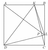 Отрезок DK при повороте на 90° вокруг центра квадрата переходит в отрезок AL, поэтому эти отрезки перпендикулярны. Аналогично DL ⊥ CK. Таким образом, прямые AL и CK содержат высоты треугольника DKL. Следовательно, P – его ортоцентр, а DP ⊥ KL.