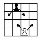 Какое наибольшее количество белых и чёрных пешек можно расставить на клетчатой доске 9×9 (пешку, независимо от её цвета, можно ставить на любую клетку доски) так, чтобы никакая из них не била никакую другую (в том числе и своего цвета)? Белая пешка бьёт две соседние по диагонали клетки на соседней горизонтали с бóльшим номером, а чёрная – две соседние по диагонали клетки на соседней горизонтали с меньшим номером (см. рисунок).